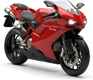La Ducati 848 millésime 2010, dans la catégorie Sportive, est équipée d’un moteur Bicylindre en L à 90° - 4 temps, développant 134 CV (98,6 kW), pour un poids à sec de 168 kg.